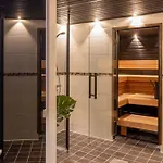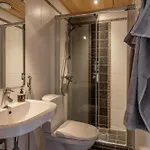 Tot de badkamerfaciliteiten van de gesitueerde in Levi Levinhuippu Villa behoren ook een bidet, een badkuip en een douche. Een haardroger en badlakens zijn inbegrepen om uw comfort te verhogen.